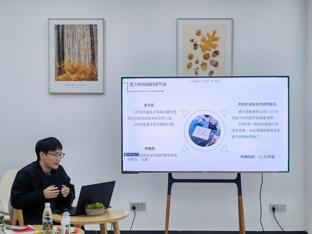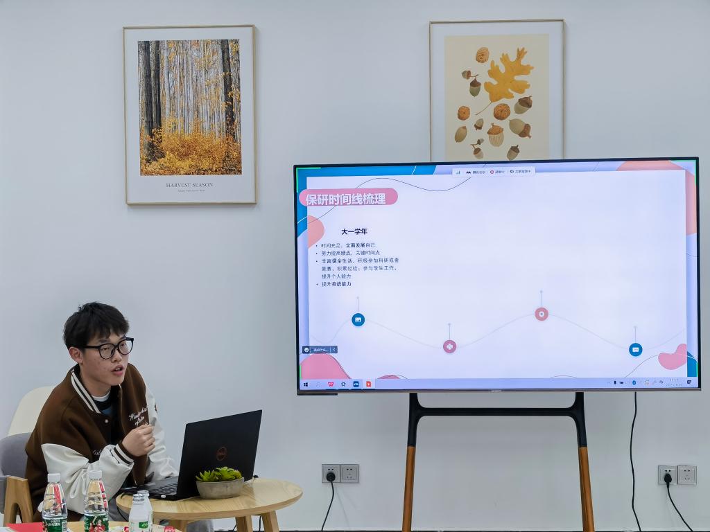 丁昊学长则是为大家讲述保研及考研双管齐下的传奇经历,并为大家推荐自己心仪的大学课程及网络考研资源分享。学长提到无论考研还是保研,都要扎实做好前期准备,及时关注各院校官网发布的夏令营通知,在预推免阶段确定自己心仪的学校,重点注意研究生考试时间。随后,学长结合综合评价成绩的规则,为大家提供学习经验,建议大家在学有余力的情况下积极参加科研项目以及竞赛,这不仅是一个学习实验知识、提升自我的机会,同时也是对自我能力的检验。