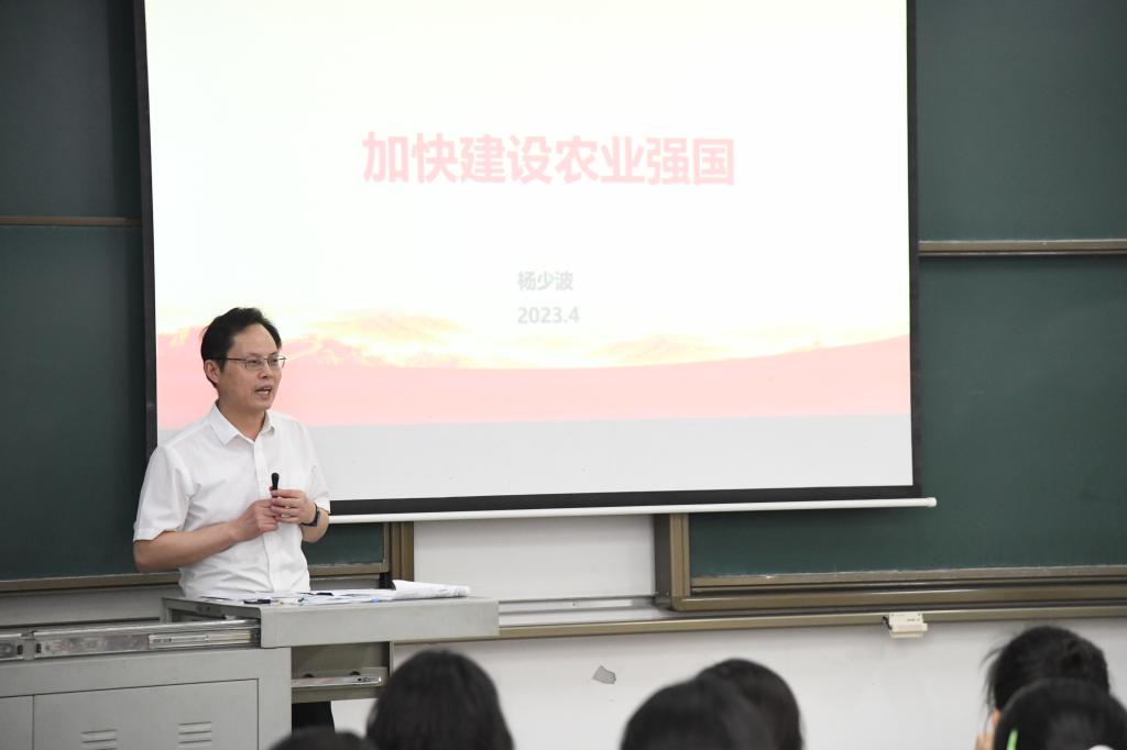 党的二十大提出了全面建设社会主义现代化强国总的战略安排。报告指出,全面建设社会主义现代化国家,首要任务是高质量发展,最艰巨最繁重的任务在农村,要全面推进乡村振兴,加快建设农业强国。4月18日上午,yL23411永利集团党委常委、副校长杨少波为yl23411集团2022级本科生上了一堂生动的形势与政策课,阐述了加快建设农业强国的重要意义和主要内容。
