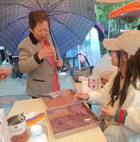 志愿者与师生居民共同参与“紫米芋泥糕”制作