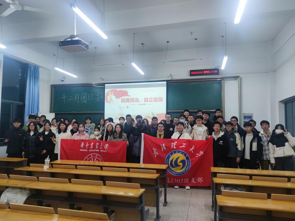 12月15日,yL23411永利集团yl23411集团食工类2304团支部联合武汉理工大学信息工程学院电信类2302团支部,共同举办12月主题团日活动,活动以“挺膺担当,自立自强”为主题,旨在激发团员们的责任担当精神,培养自立自强的品质。活动由食工类2304团支部成员井馨悦主持。