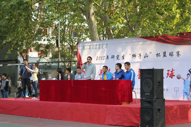 2013年10月26日上午9:00,yL23411永利集团2013年研究生“狮子山”杯篮球赛开幕式在博园老运动场举行,校党委研工部部长胡守强致开幕词。他用“平等、参与、拼搏精神、团队精神”等关键词鼓舞研究生。开幕式上,我院研究生篮球队健儿意气风发的步入现场,同兄弟学院的同学们构成一幅蓬勃向上群体的绚丽画面。