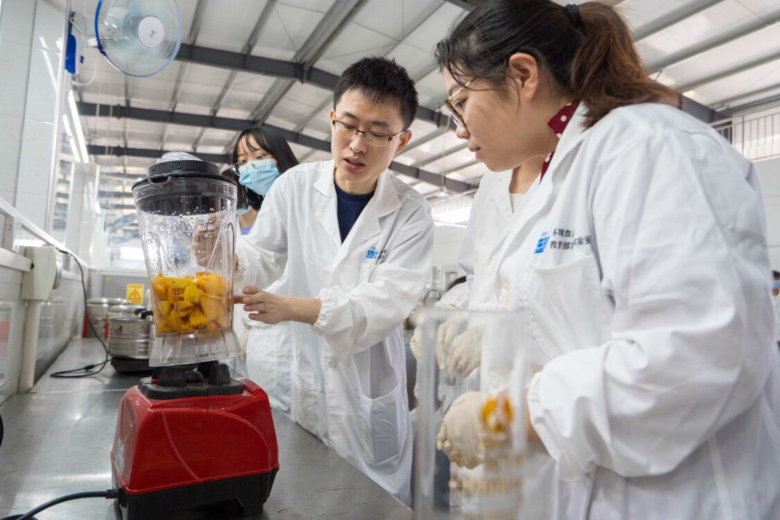 接下来,盛龙老师为大家讲解了具体的冰淇淋的实验步骤以及制作过程中的注意事项,还介绍了实验所需设施的摆放位置,以方便同学们实验的顺利进行。在实验步骤介绍完成后,鲁老师带领大家参观了食品工厂的实验仪器,为冰淇淋制作部分作准备,并介绍了一些食科院开展的公共实验课,号召各个学院感兴趣的同学积极参加。同学们纷纷表示体验了食品科学实验的奥秘。随后到了冰淇淋的制作过程部分,从原料的配比称量到果肉的处理打浆,再到材料的巴氏杀菌处理和胶体磨机器使用细化口感,以及最后降温冷却等待冰淇淋的诞生,每一步都在两位老师的指导下有序地进行。通过冰淇淋原料称量,大家也更加了解了冰淇淋的热量糖度来源,纷纷表示以后要合理选择零食,控制糖分摄入。在不同的步骤中,小组内成员分工协作,相互讨论,并积极询问老师在制作过程中所遇到的问题。同学们也根据小组成员的喜好制作了不同口味,发挥自己的创意加入了坚果巧克力等来丰富口味,制作小组独一无二的冰淇淋。