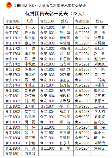 优秀团员(73人):