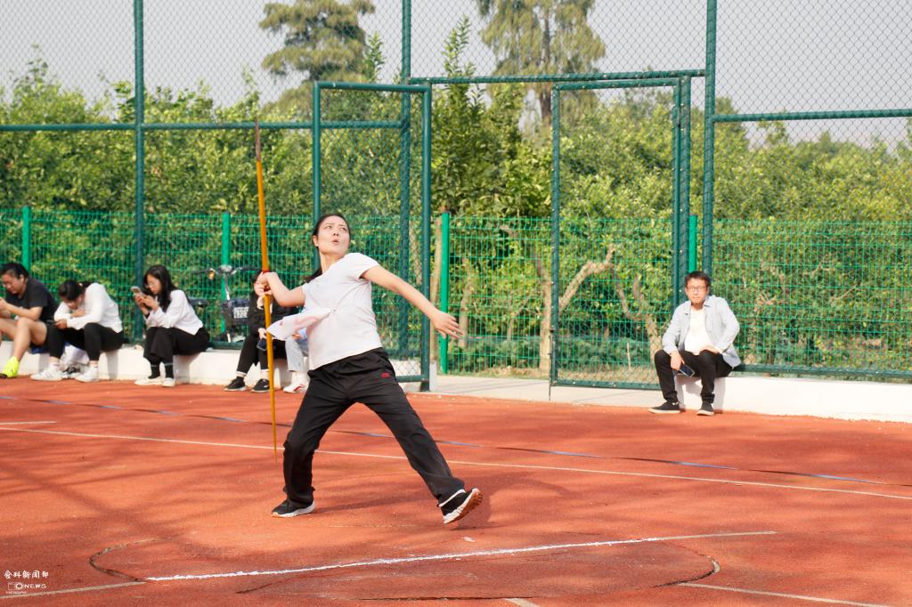 三运标枪场内,食研21博士杨琴站在起点,瞄准方向,将标枪奋力推出,使其在空中划过一道弧线,伴随“唰”的一声,标枪入地,杨琴以18.46米的成绩获得女子标枪比赛的第五名。
