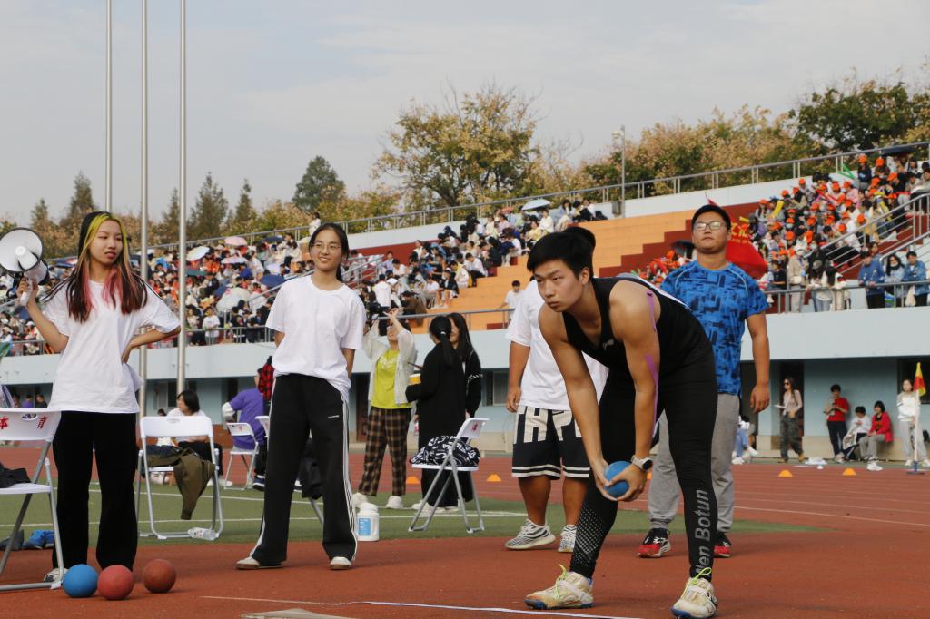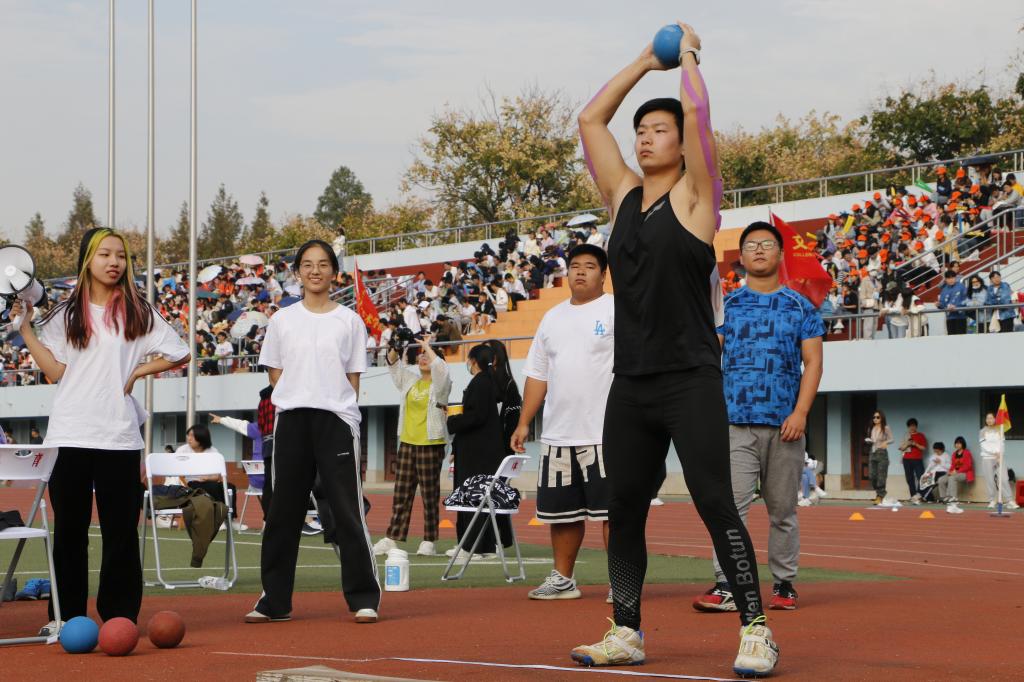 双手拿球举过头顶,身体向后倾斜,然后蓄力、抛出,动作一气呵成,在观众的欢呼声与掌声中,我院研究生李梓豪又一次取得了前掷实心球比赛的第一名。