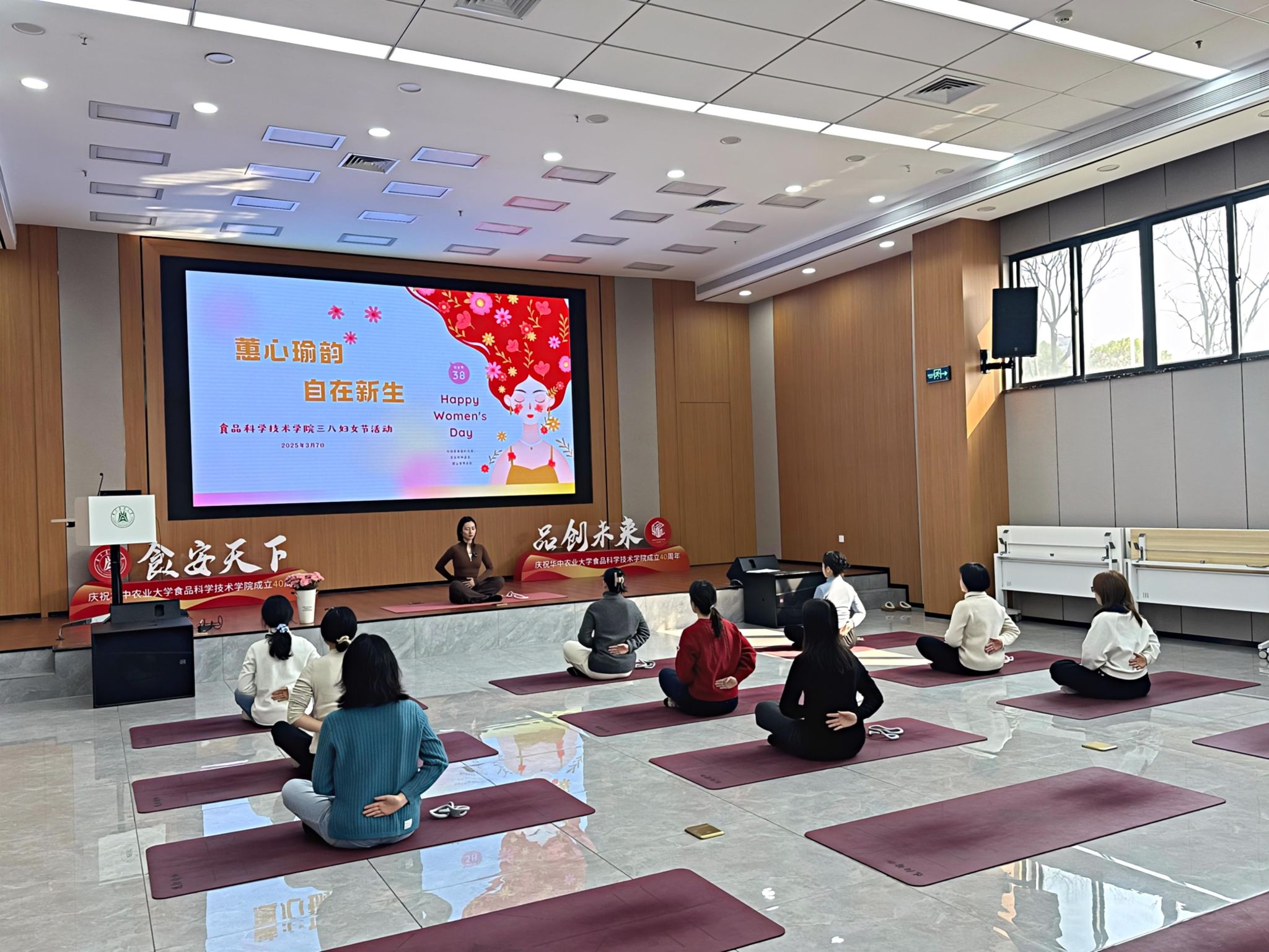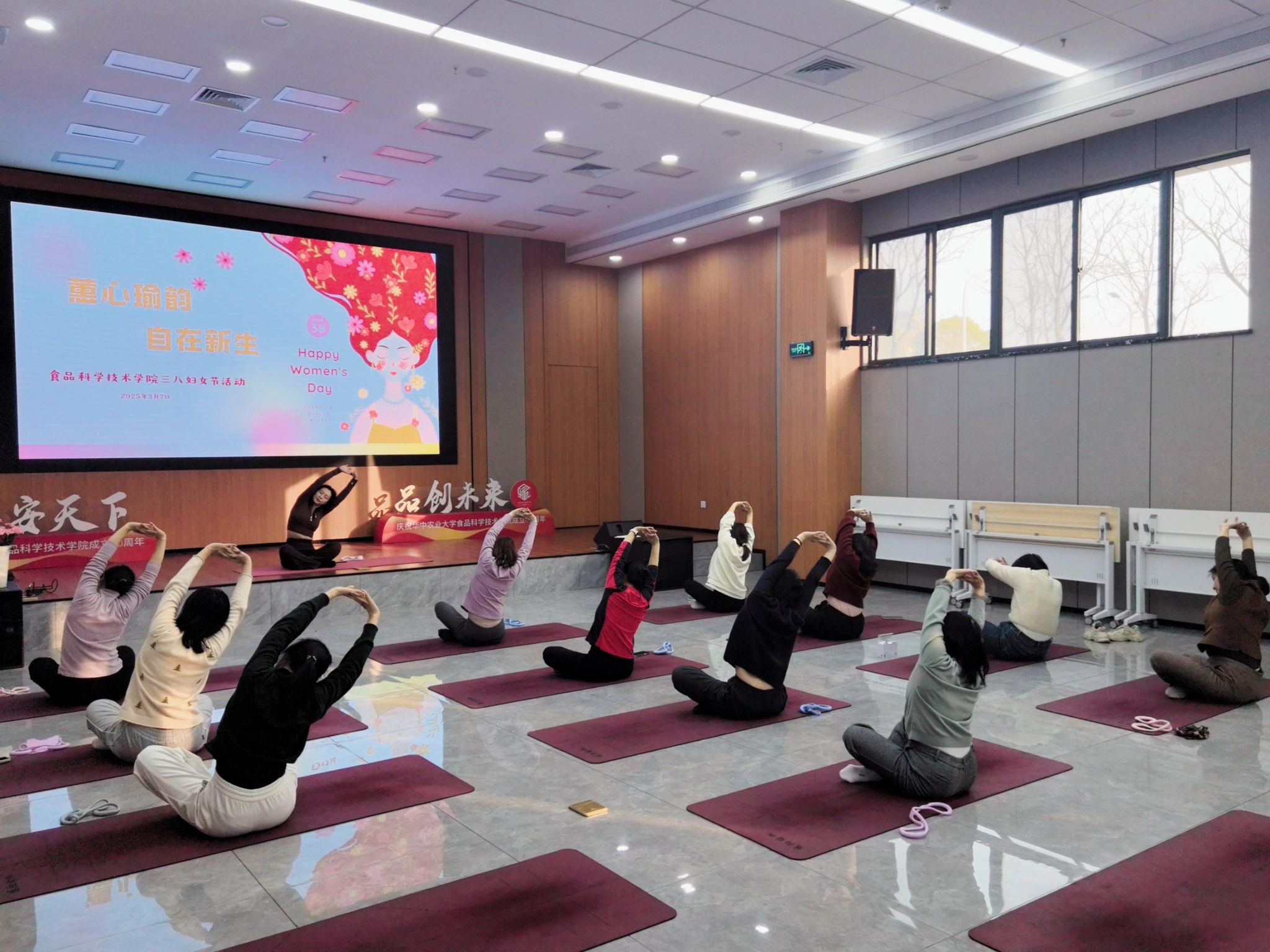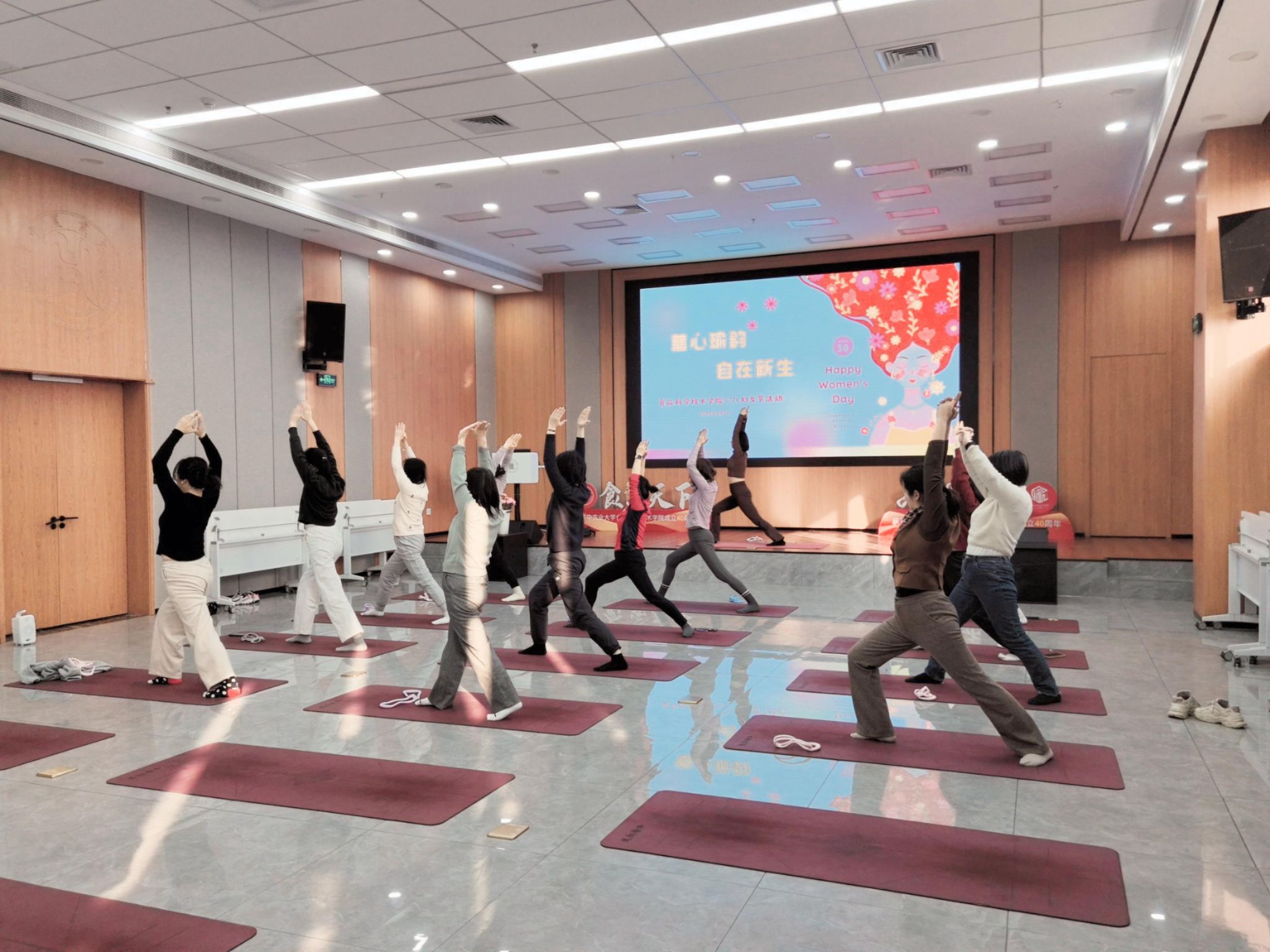 三月春光暖,巾帼绽芳华。为庆祝第116个国际妇女节,以实际行动关爱女性教职工身心健康,3月7日下午,yl23411集团工会精心策划的“蕙心瑜韵·自在新生”三八妇女节主题活动在新工科大楼103会议室温馨启幕。30余位女教职工齐聚一堂,通过疗愈瑜伽与团队互动,共享松弛时光,传递健康生活理念。