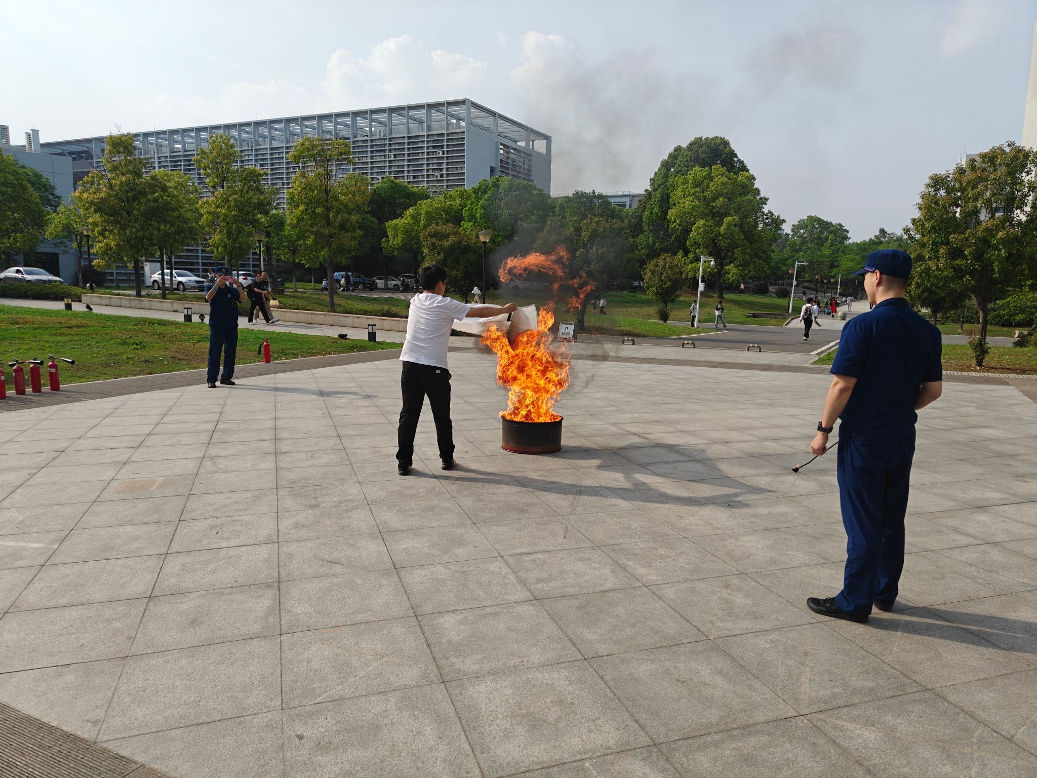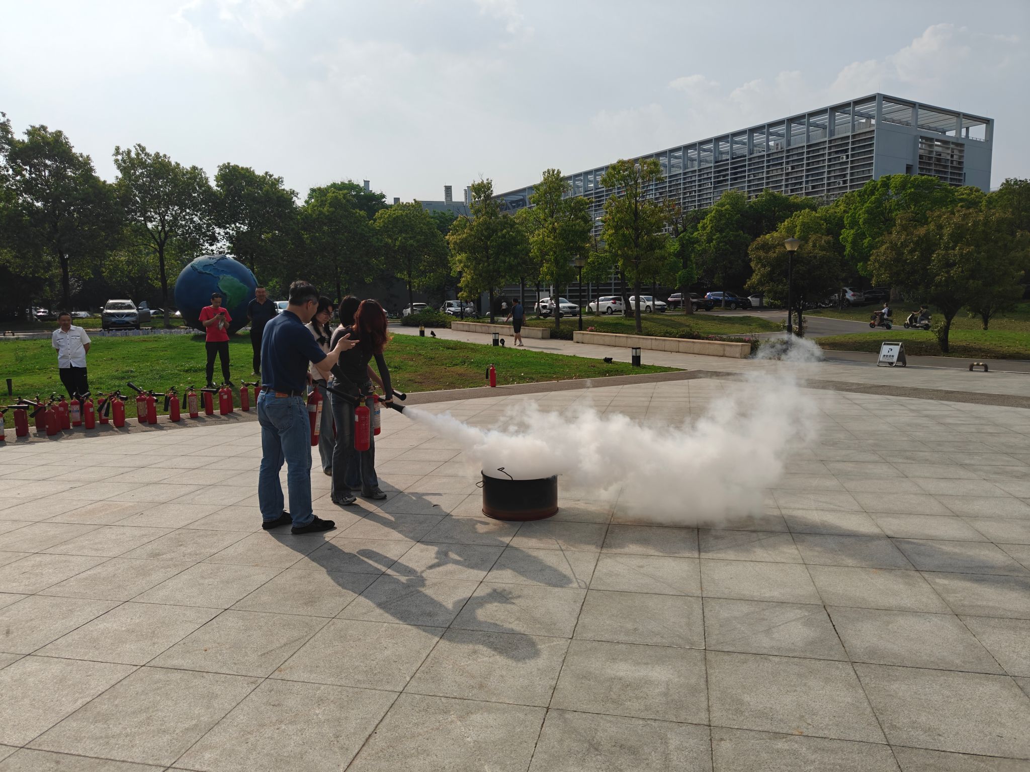 随后,同学们在王教官的指导下于学院院楼前进行实操演练。通过动手操作,学生们不仅掌握了灭火器的使用方法,更对火灾防范有了深刻的认识。