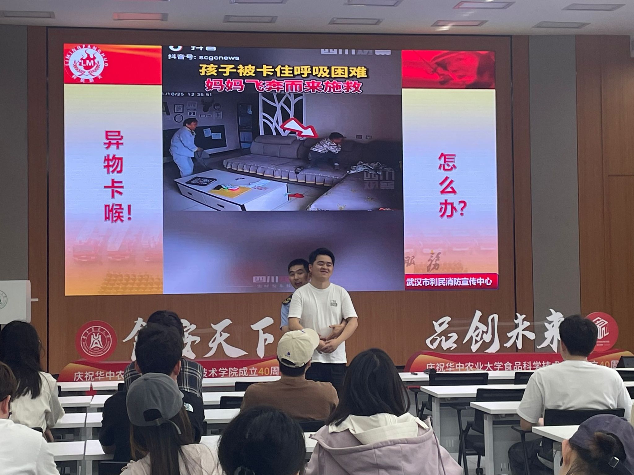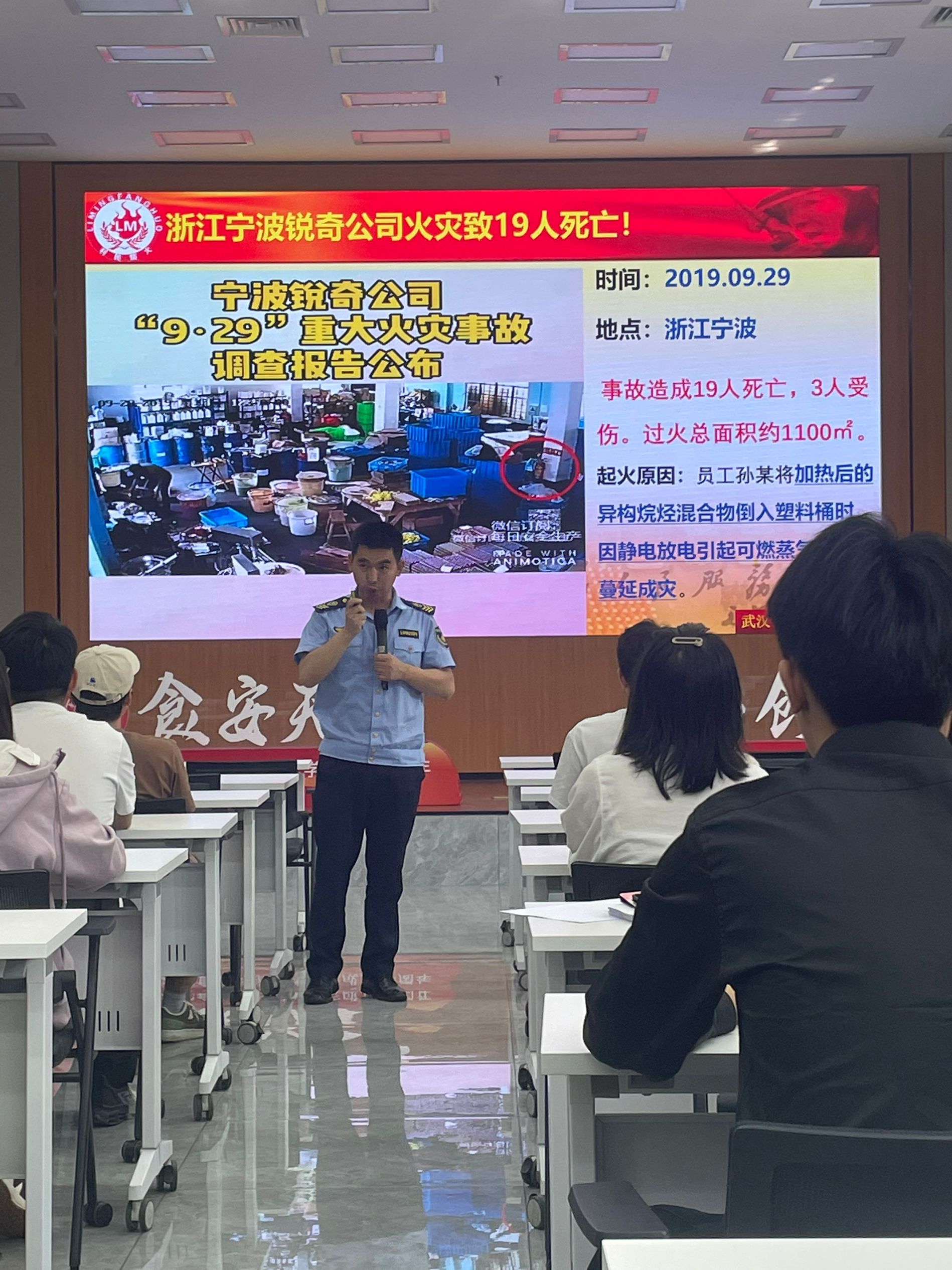 活动伊始,武汉市利民消防宣传中心王教官于新工科楼103报告厅围绕“全民消防,生命至上”这一主题,通过生动的图文展示和真实的视频案例,深入浅出地剖析了火灾成因、预防措施以及自救技巧,进一步增强了师生的防范意识和逃生能力。