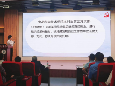 在紧张的支部实务能力比拼环节,各参赛党支部通过现场抽题的方式,直面党建工作中的实际问题。面对“支部某党员毕业后选择直接就业。进行组织关系转接时,该党员发现自己工作的单位无党支部,对此,你认为该如何处理?”考题,第三党支部副书记康智铭同志凭借丰富的工作经验和扎实的理论功底,沉着冷静、精准作答。他结合《中国共产党党员教育管理工作条例》中的相关规定,提出可将该党员的组织关系转接至其经常居住地或者公共就业和人才服务机构、园区、楼宇等党组织等具体可行的解决方案,充分展现出扎实的业务能力与过硬的专业素养。