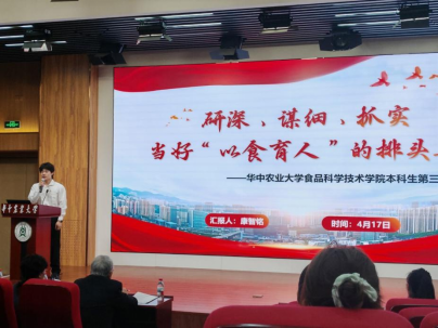 在支部建设成效汇报环节,本科生第三党支部副书记康智铭同志以“研深、谋细、抓实”为脉络,聚焦“以食育人”的创新实践,从理论学习的深度挖掘到实践行动的闭环管理,以详实的数据汇报支部全年开展的理论学习、实践调研等活动,配合党支部与学校建安部多次结对共建以及“红色导师”等生动案例,系统展示了支部在思想建设、组织建设、制度建设等方面取得的丰硕成果,充分彰显了支部创新发展的工作思路与扎实有效的建设举措。