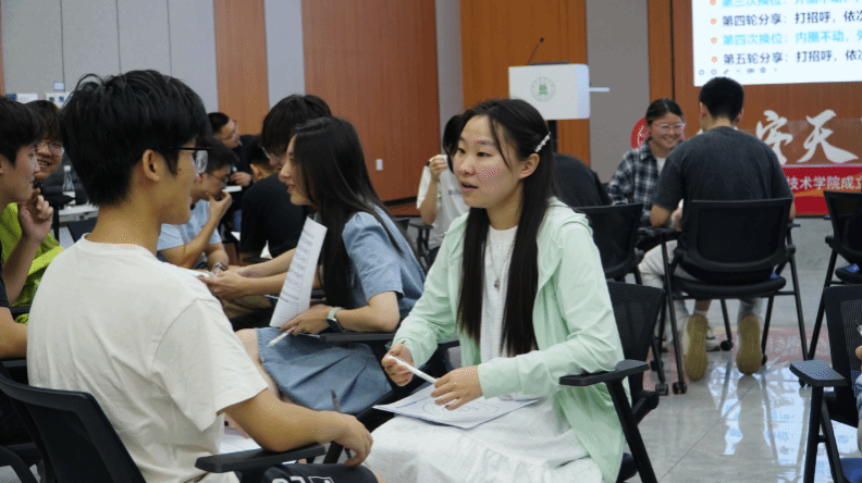 分组完成后,为引导同学们更好地进行自我认知与相互了解,余老师率先进行自我介绍示范,分享了自己的姓名、籍贯以及三个优点和对应事例。在老师的带动下,各小组成员依次进行自我介绍,并随机抽取同学介绍其所在小组每位同学的姓名,这一环节也进一步加深了同学们之间的印象与了解,现场互动气氛更加活跃。