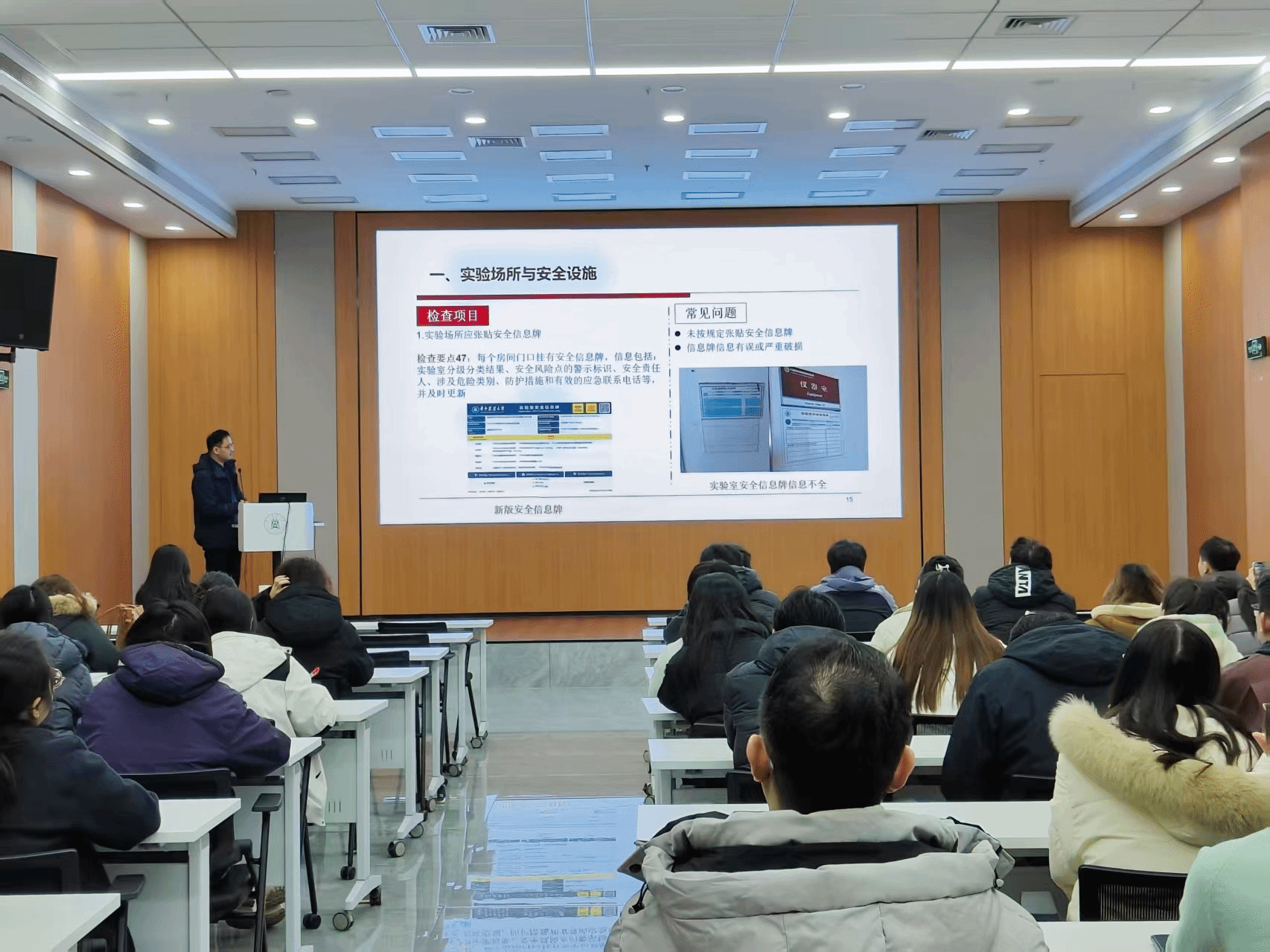 为全面提升师生实验室安全意识与风险防范能力,2025年12月12日上午,yl23411集团联合校园建设与安全保卫部,在学院103学术报告厅举办实验室综合安全培训会。学院副院长许刚、部分教师代表及百余名学生参加了此次培训。