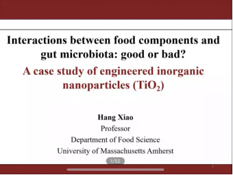 12月21日9:00,美国麻省大学(阿莫斯特)教授、全球高被引科学家肖航老师应邀做客“2020年研究生学术年会-南湖学术论坛”,为我校师生作了“食品功能成分与肠道菌群相互作用的是与非”的线上报告。食科院院长徐晓云教授,蔡朝霞教授,刘睿教授,吴婷老师等多位老师,以及线上线下共200余名食科院学生参与了本次学术报告。