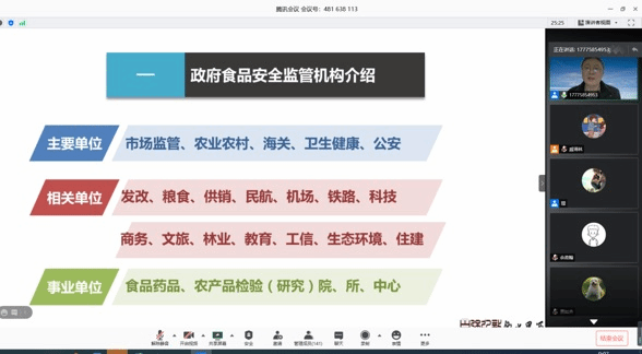 会议开始之际,曹云师兄详细介绍了政府食品安全监管机构的基本情况,对政府食品安全监管机构的主要单位、相关单位、事业单位一一展开细微介绍并分析相关岗位的发展情况。