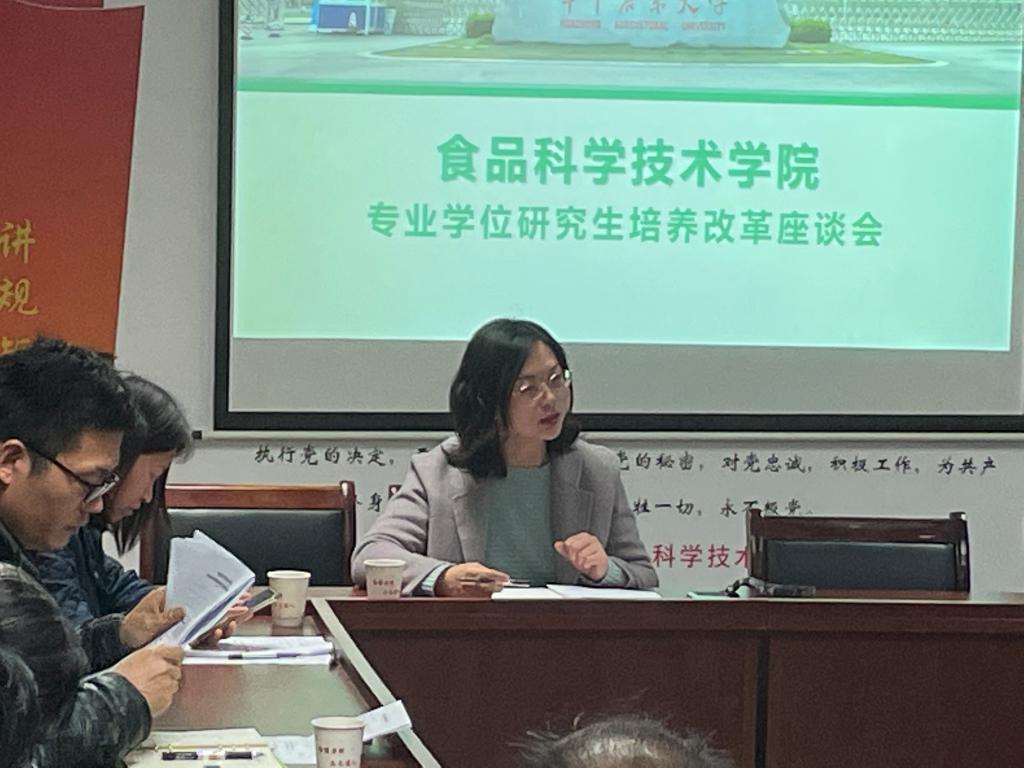 最后,研究生院培养处处长祁婧老师做总结发言。她认为本次培养改革座谈会具有重要的意义。当前食科院研究生教育改革还有很长的路要走,食科院要发挥自己的主观能动性,立足实际情况,依托科学理论研究,不断向外拓展,利用好食品行业龙头企业提供的机会与老师的横向课题,培养学生工程实践与研发能力,塑造食科专硕培养品牌。