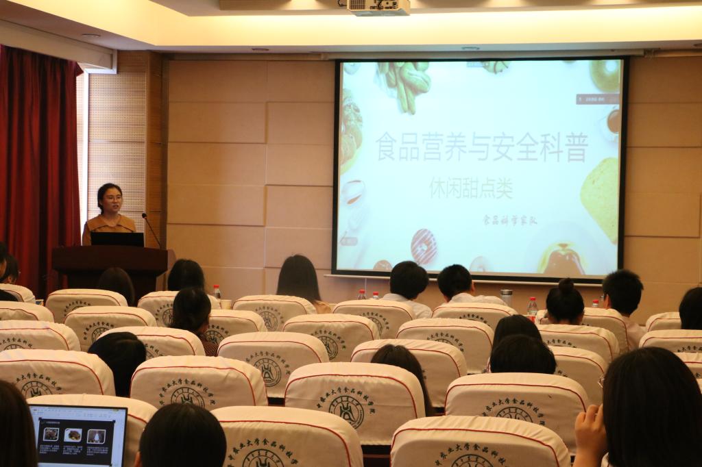 “东方不醉”队向大家介绍了葡萄酒的功效、鉴别方式和自酿葡萄酒的安全问题。针对目前越来越多人开始自己在家酿酒,安全性是否有保障的现象,该团队向大家科普,自酿酒和商品酒相比,所用的的原料不同,商品酒所用的葡萄品种更适合酿酒,自酿酒最大的隐患就是甲醇中毒,因此在酿造的时候,一定要控制好酿造的条件。“食品科学家”队给大家科普了几类很受欢迎的休闲零食:酸奶、薯片和蛋糕。“很多人吃饱了饭,都会选择喝一瓶酸奶帮助消化,这是正确的吗?”面对同学的疑惑,该团队也进行了解答。“其实这是错误的。酸奶是一种饱腹感很强的食物,它添加了蔗糖,热量也很高,是不助于消化的。”该团队对如何挑选蛋糕也提出了“五个不要”,一是不要买含氢化植物油奶油的蛋糕,二是不要买含巧克力的蛋糕,三是不要买色素多的蛋糕,四是不要买含水果的蛋糕,五是不要买含酥皮的蛋糕。