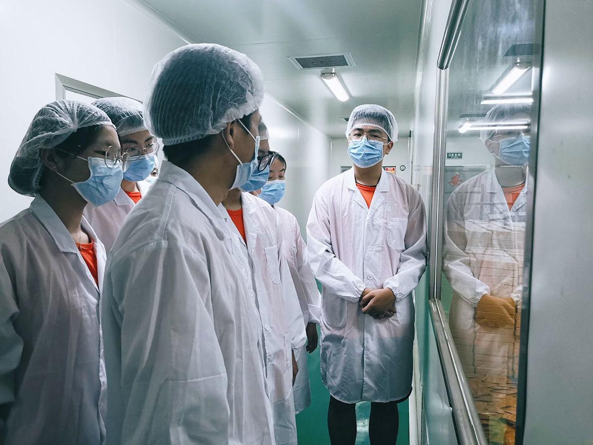 学生党员们参观蘑菇和固体饮料等的生产流程