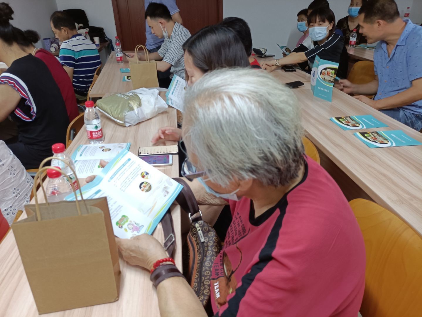 活动的最后,志愿者陈贵婷带领大家一同学习湖北省市场监督管理局印发的食品安全手册,提醒居民保健品不是药品,不可达到治疗疾病的功能,若需购买保健品一定认准保健品标志“蓝帽子”,谨防保健品虚假宣传,科学保健,不要滥用保健品。