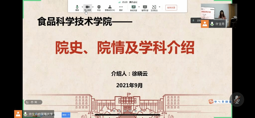 (yl23411集团通讯员张芃芃)9月16日下午,食科院院情院史及学科介绍暨学术道德规范讲座在工科楼122会议室举办。会议由食科院20届研会主席沈路虹主持,食科院院长徐晓云、副院长陈翊平、新生辅导员许宝丹及一百余名21届研究生新生通过线上线下的方式参加了本次会议。