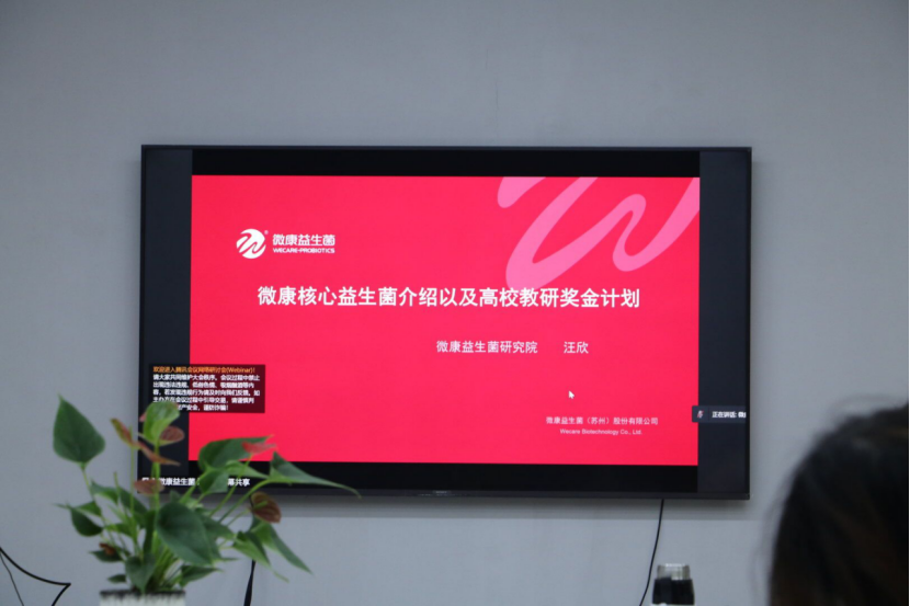 来自益生菌龙头企业微康益生菌的汪欣向各位老师与同学带来了公司的明星菌种以及以及益生菌基础研发方向的思考,他谈到“益生菌的功效不仅仅只有调节肠道代谢,还可以降低心血管疾病的发生率、降低癌症的发生率,针对一些免疫性疾病,可以减轻过敏反应、缓解炎症。从市场需求来看,未来研发的方向应该是益生菌功能性评价以及益生菌在发酵食品中的应用。”汪欣从企业出发,深入讲述了目前以及未来益生菌市场的需求。他也表示“我们非常愿意与高校建立合作,与老师和同学们一起在益生菌方向开展更多的研究,提升国产益生菌产业的基础研究水平,促进高校与企业的结合,让更多的研究成果走出实验室,走向市场。”