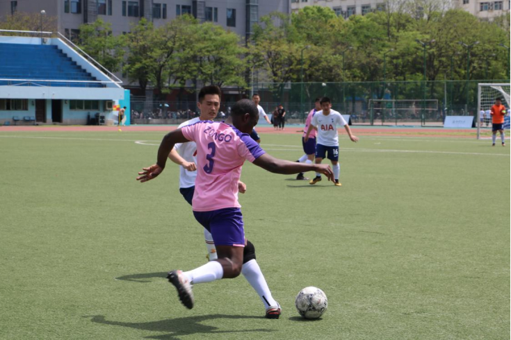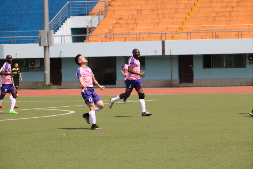 本次比赛中新加入的三位海外同学:Daniel、Libere、Zongo也给观众们留下了深刻的印象。他们分别来自布基纳法索和布隆迪,是三位非常热爱足球的研究生。虽然来自不同国家、不同年级,可当穿上粉色球衣的那刻,大家只有一个信念,那就是为食科而战,为食科争光!比赛后Libere表示认识了很多来自中国的优秀球员,更结识了同样热爱足球的中国朋友,之后将不断努力进步,希望下次能取得更好的成绩。