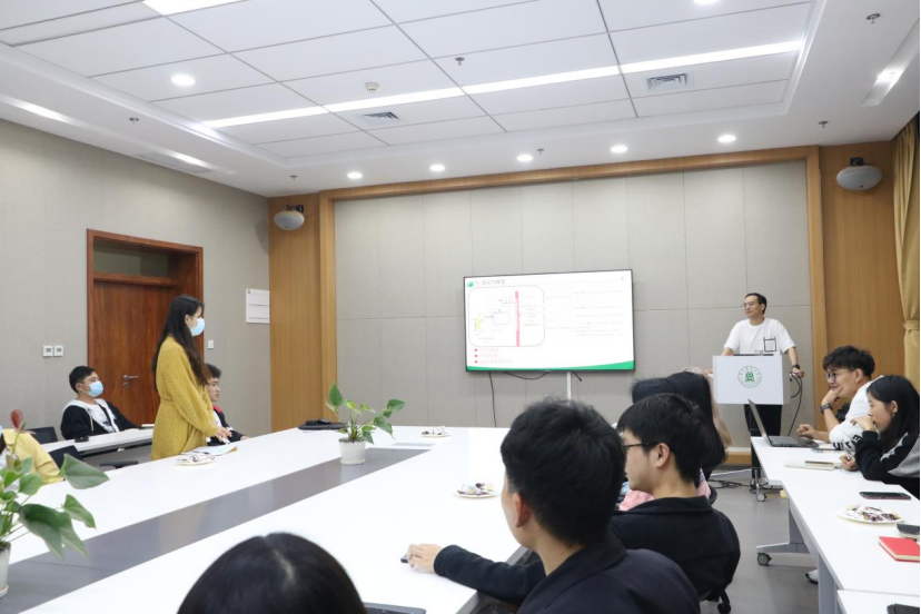 活动开始,侯焘老师给同学们分享了最新研究课题“大豆源硒蛋白/硒肽”以及相关成果。首先介绍了硒的吸收利用机制、植物硒蛋白的获得、功能,再到大豆硒蛋白的制备等等,此课题目前已发表6篇SCI,1篇中文文章以及1篇专利。通过该案例,由此引入一个课题的诞生、萌芽、成长以及落地所经历的艰辛,同时,侯焘老师还告诉同学们:“看文献不如看教材,教材是我们知识的起源。科研成果不等人,当一个想法诞生之后,要快速的投入试验,并且作为研究生,我们不能将科研终止于硕士论文,然后将其束之高阁。对于专硕学生,答辩时,最好有自己做出的产品,这才叫真正的完成了硕士期间的任务。”