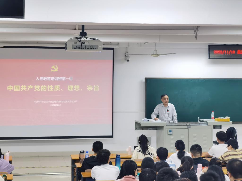 11月10日晚,我院第82期党校全体学员在三教B205参加党校第一次培训课。本次培训由学院党委书记杨铁贵为学员讲授《中国共产党的性质、理想和宗旨》一课。