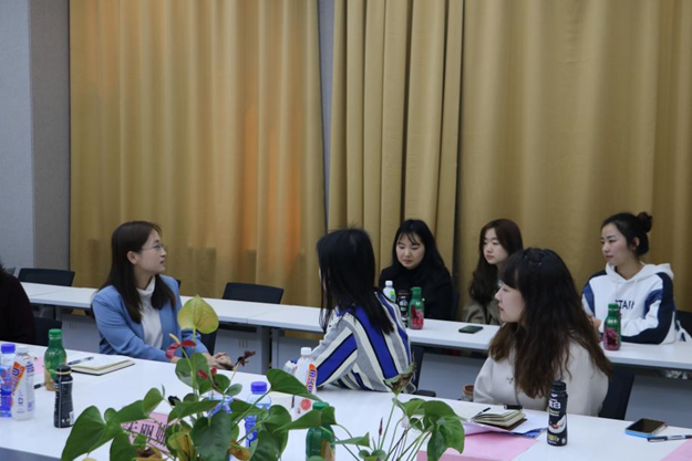 学生在座谈中积极交流:如管培生的转正率?达能招聘更加注重哪些方面?管培生待遇?达能集团企业代表们纷纷化身企业导师,他们表示:应聘工作首先保证对工作职位的热爱程度;其次,不能只看到企业光鲜的一面,还需要看到企业背后的一些规则,接受程度如何;最后,就是企业注重应聘人的硬技能和软技能,如合作偕同能力、胜任力、领导力、逻辑思考力等等。