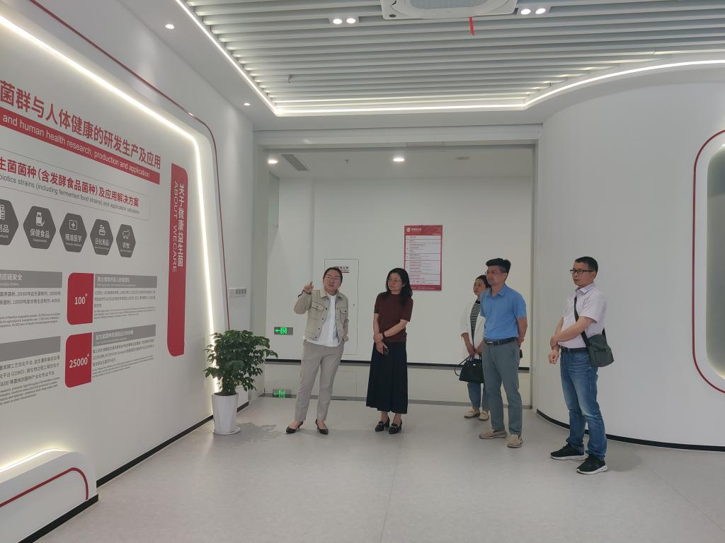 微康益生菌(苏州)股份有限公司市场总监方端首先对徐晓云一行的到来表示欢迎,他表示yL23411永利集团食科院为微康集团输送了大量优秀毕业生,从公司员工到公司的领导层都有华农的毕业生。方端首先带领徐晓云一行参观了微康益生菌(苏州)股份有限公司的展示大厅,并介绍了微康目前的发展情况,她说到,微康是一家专业专注益生菌菌种、发酵食品菌种、有益微生物菌群与人体健康的研发生产及应用的国家级高新技术企业,为食品、乳制品、保健食品、精准医学、日化用品、农业微生态等领域提供高活性益生菌菌粉、发酵食品菌种、益生菌产品及应用解决方案。公司具有雄厚的研发实力和科研背景,拥有专业的益生菌研究院,设有院士工作站和博士后科研工作站。公司已获得国家高新技术企业、国家绿色工厂、国家专精特新小巨人、江苏省科技小巨人、江苏省双创人才企业、苏州市姑苏人才企业、苏州市独角兽培育企业和苏州市瞪羚企业等多项荣誉认定,产品“高活性乳双歧杆菌”和“高活性嗜酸乳杆菌”等获得国家高新技术产品称号,申报发明专利160多项,承担“十三五国家重点研发计划”4项。