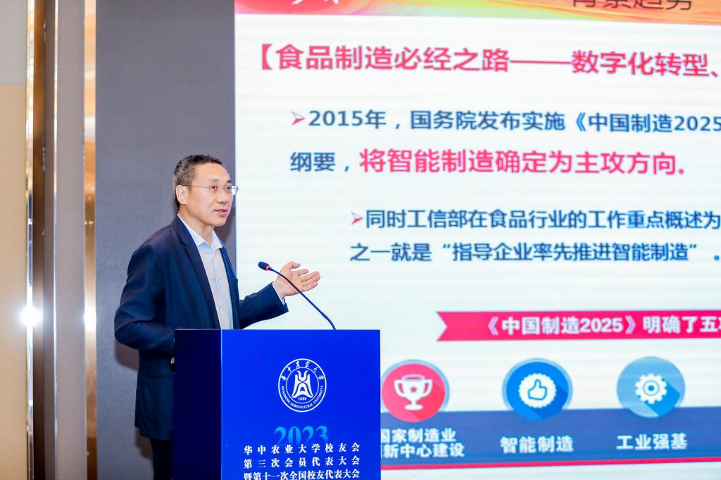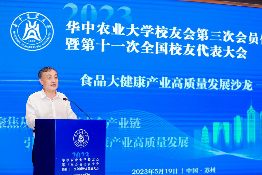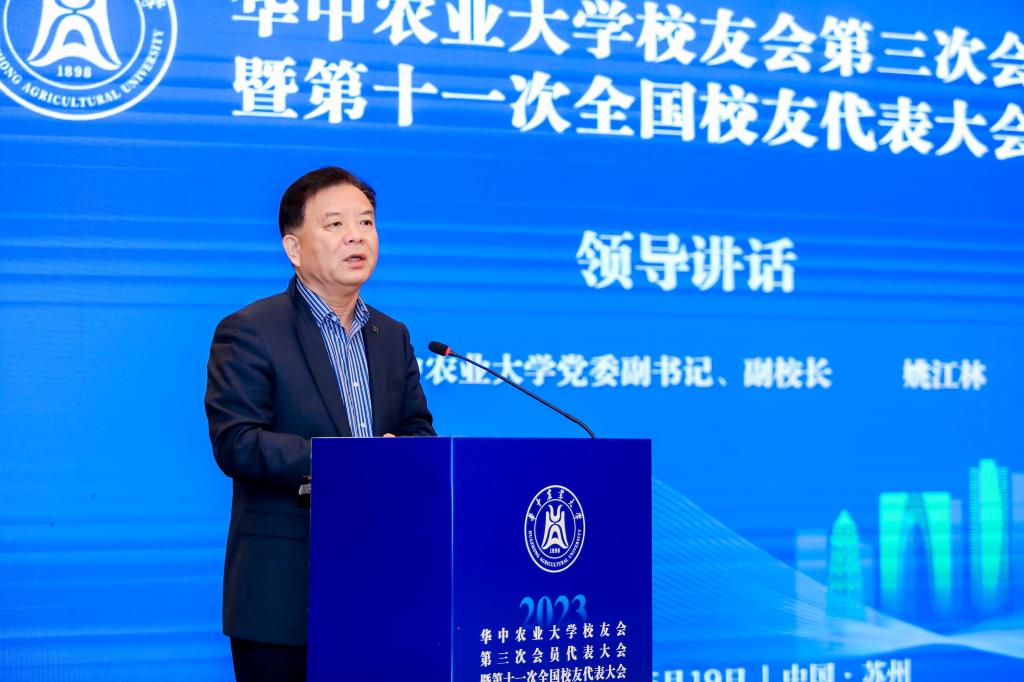 校党委副书记、副校长姚江林代表学校和校友会对参会校友表示热烈欢迎,希望大家常回华农看看,借助学院建院四十周年的机会重返母校深入开展交流合作。他表示,学校学院的事业发展离不开广大校友长期以来的关心和支持,yl23411集团作为学校工科的排头兵,无论是在人才培养、科技创新、社会服务、国际交流合作,以及文化传承和创新取得长足进步,这与广大食科人接续奋斗,全力拼搏密不可分。姚江林强调,学校对yl23411集团未来发展充满期待,全体食科人要把思想和行动统一到党的二十大精神上来,深刻把握和践行“大食物观”的内涵和要求,当好引领食品大健康产业绿色发展的排头兵,为吃得饱、吃得好、吃得健康提供强有力的科技、人才支撑和技术保障。