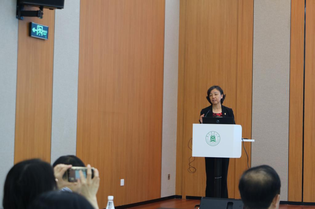 徐晓云院长作总结讲话。她表示,俞良莉教授的报告在打开实验思维方面做出了很好的示范,教会师生如何在一个新的领域进行研究和深入挖掘,呈现出的逻辑之美和科学之美,解决了许多老师们在科研路上遇到的困惑,也给予正在研学的学生们积极向上的动力。