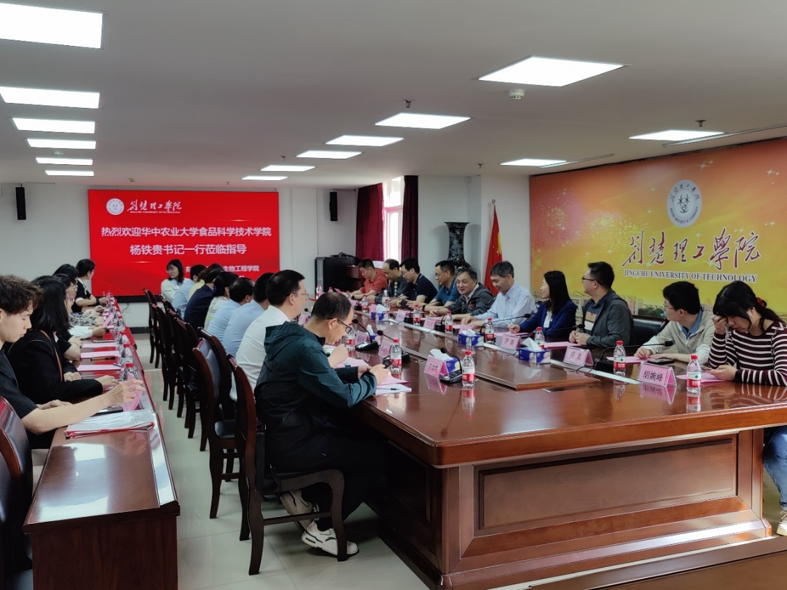5月23日,杨铁贵一行前往荆楚理工学院开展校校教学、科研研讨。研讨会由生物工程学院党委书记杨晖主持。研讨会上,生物工程学院院长朱德艳首先致欢迎辞,并介绍生物工程学院情况。我院党委书记杨铁贵则围绕我院教学和科研基本情况进行了详细介绍。食品科学与工程系主任王鲁峰作了“践行OBE理念-工程教育认证的几点思考”的专题报告。生物工程学院副院长易庆平、王劲松和黄业伟就研究生招生点设立、师资力量扩充、工程教育认证筹备等方面内容,与我院副院长刘友明等进行了广泛交流。荆楚理工学院副校长曹甜东表示,学院现有多名教职工毕业于yL23411永利集团,两所高校设置了多个相同专业,希望未来可以进一步加深双方合作,共同促进乡村振兴。