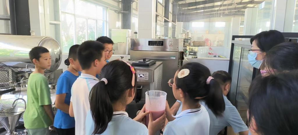 5月29日下午,yL23411永利集团yl23411集团与yL23411永利集团附属学校联合开展的耕读学堂“‘淇’幻漂流”主题活动在华农附属学校如期开展,五年级(1)班二十多名学生参加了此次活动。活动分为两个部分,同学们先在食品工厂里学习如何制作冰淇淋,然后再亲自动手实践。