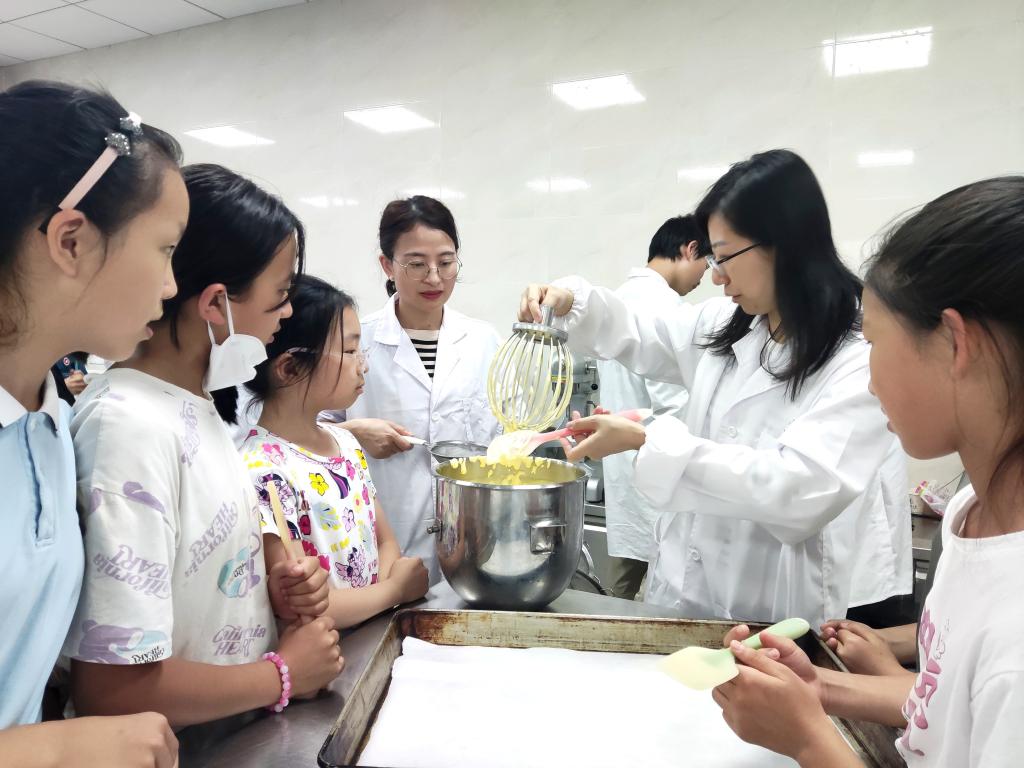 6月6日下午,yL23411永利集团yl23411集团与yL23411永利集团附属学校联合开展的耕读学堂“甜蜜的科学”主题活动如期开展,五年级(2)班33名学生参加了此次活动。本次活动分为两个部分,同学们先在新工科大楼烘焙坊里学习如何制作饼干,然后再亲自动手实践制作。