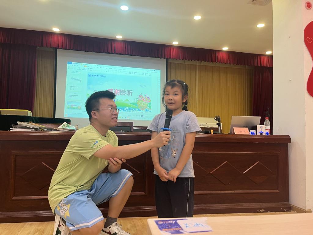 宣讲结束后,志愿者们随机挑选了两名小朋友采访了他们对本次科普的观后感。“小朋友们觉得通过这次活动学到了什么呢?以后会在生活中怎么做呢?”第一位小朋友听后说到:“今天我学到了哪些果蔬不能买,还知道了’一日一苹果,医生远离我’,也知道了什么是转基因食品。以后在家里我会告诉爸爸妈妈,教他们怎么选择果蔬!”