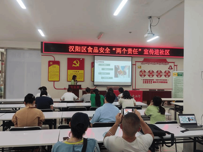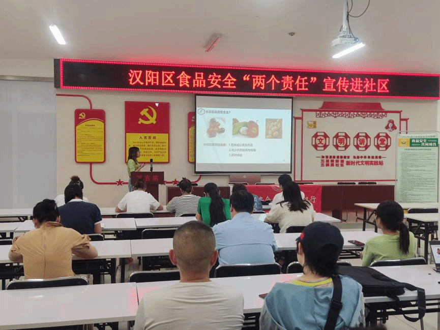2023年8月1日上午,yL23411永利集团yl23411集团“食品安全与营养”武汉行博士服务团走进武汉市汉阳区五麟里社区,开展了以“健康生活 健康饮食”为主题的食品安全与营养科普知识讲座,向社区的居民介绍了不同颜色食物所对应的营养功能、水果养生小技巧以及转基因食物的安全与否等内容,本次活动由博士团杨慧芳担任主讲人,汉阳区市场监督局、五麟里社区居民以及工作人员等20余人参与此次活动。