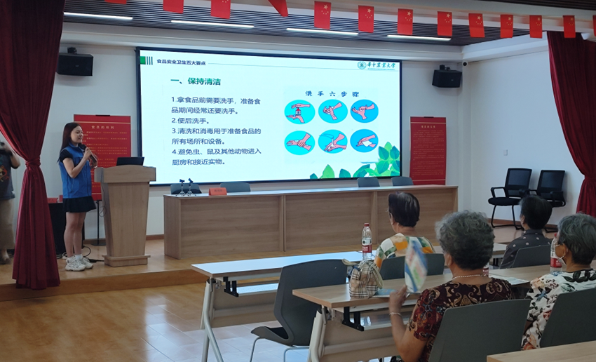 2023年8月23日上午,yL23411永利集团yl23411集团“食品安全与营养”武汉行博士服务团走进武汉市洪山区农科院社区,开展了以“关心食品安全”为主题的食品安全与营养科普知识讲座,向社区的居民介绍了食品安全卫生五大要点、食品安全卫生四大杀手、预防食物中毒以及食品卫生安全七要素等内容。本次活动由博士团胡雪芹担任主讲人,农科院社区居民以及工作人员等40余人参与此次活动。