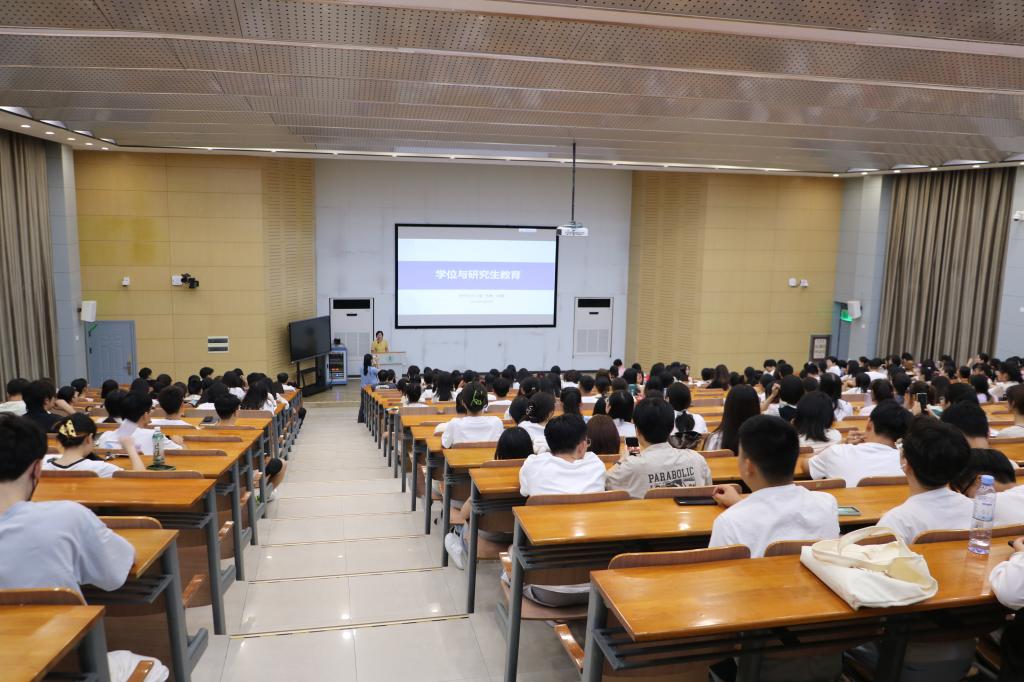 研究生教育作为国民教育体系的顶端,是培养高层次专门人才的主要途经,是国家人才竞争的重要支柱,是建设创新国家的核心要素。为了使研究生新生充分了解研究生学位与课程的基本情况,做好学习计划,投入新的学习,9月6日晚上,我院于三教S2开展2023级新生学位与研究生教育会议,研究生办公室苏铮、徐薇以及全体2023级研究生参加此次会议。