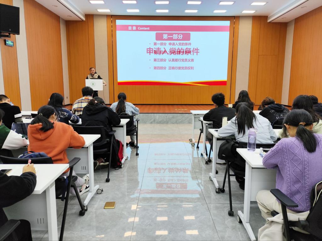 杨铁贵着重介绍了党员的基本条件和党员的八项义务。他指出,要在深入学习党的理论知识中全面履行党员义务,在研究重点难点问题中严格履行党员义务,在深耕本职岗位上自觉履行党员义务。“没有无义务的权利,也没有无权利的义务”。杨铁贵引用马克思的名言向同学们进一步阐释了党员义务和权利的重要内涵,强调了理论学习对于中国共产党的重要性。