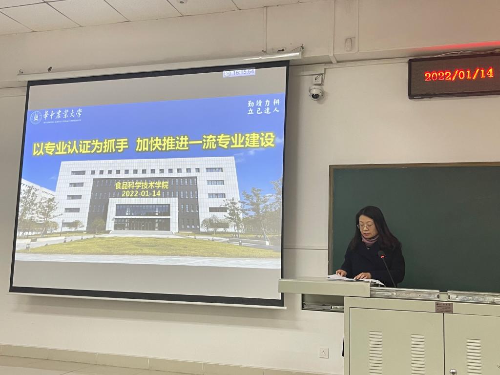徐晓云回顾了专业认证的过程,分析了认证工作中好的做法和存在不足,对持续改进中需要重点推进的工作进行了部署。她认为,一是要提升对课程体系的总体把握能力,增强课程建设质量意识;二是要提升专业教师在学生学习指导中的核心职责意识;三是要提升资源整合能力,积极编写基于核心素养培养的实习实训指导书;四是要提升改革创新的能力,积极开展基于CDIO-OBE理念的教育教学改革研究。同时,理清思路,明确目标,落实落地现代食品产业学院建设工作,明确现代食品产业学院建设方向、人才培养模式、形成“双师双能”的教师体系结构,切实做到高质量培养人才。