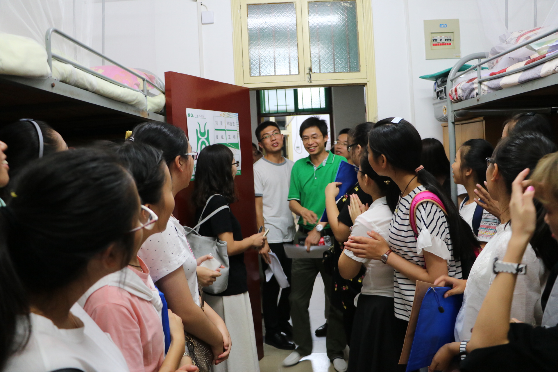 9月1日晚7时,yl23411集团2016级新生班会在荟园八栋宿舍、yl23411集团院楼拉开帷幕。yl23411集团党委书记杨仁海、院长李斌、党委副书记向异之、副院长张柱红、副院长徐晓云以及4位辅导员老师亲切走访新生班会现场。