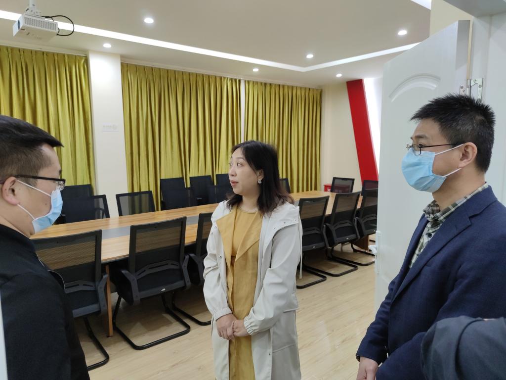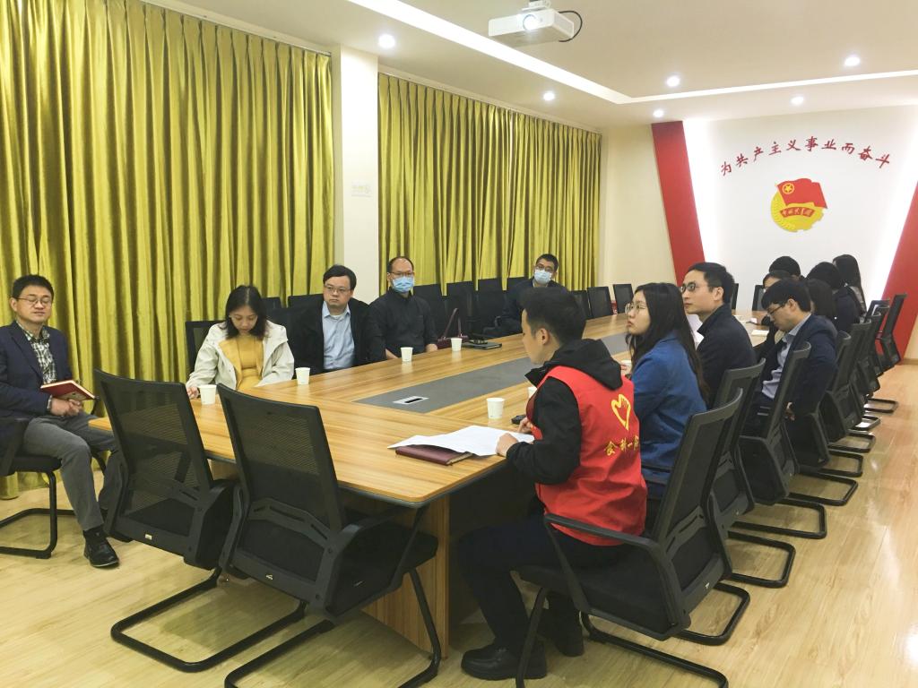 在参观完“食科一家人”食品安全科普社区宣传点、洪山区金鹤园青少年空间后,到达了金鹤园青少年空间会议室,调研组与社区志愿者座谈交流,听取了我院及武汉团市委、洪山团区委试点有关工作的情况介绍。“食科一家人”志愿者李虎从试点项目背景、工作进展、中期总结回顾和下一步工作安排等方面进行了汇报。“食科一家人”指导老师李子鑫汇报了项目依托学校优势特色学科开展社区志愿服务的相关情况,介绍了我院志愿者联合社区党员志愿服务队围绕环境保护、专业知识科普、课业辅导等3个项目在社区常态化开展试点探索的工作进展。